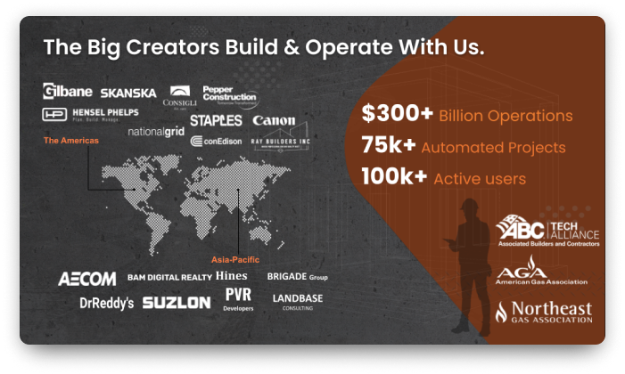 We’re honored to have industry-leading ENR Top 400 clients who trust us with their portfolio of projects on jobsites across the country everyday. We are invested in their success, which goes beyond 24/7 support into using their experiences to shape our product’s capabilities with each new release. In real terms, that means our clients are constantly seeing the savings & benefits of a product that is contouring to their needs, and being designed & developed to keep pace with the companies at the forefront of this industry.