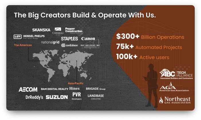 We’re honored to have industry-leading ENR Top 400 clients who trust us with their portfolio of projects on jobsites across the country everyday. We are invested in their success, which goes beyond 24/7 support into using their experiences to shape our product’s capabilities with each new release. In real terms, that means our clients are constantly seeing the savings & benefits of a product that is contouring to their needs, and being designed & developed to keep pace with the companies at the forefront of this industry.